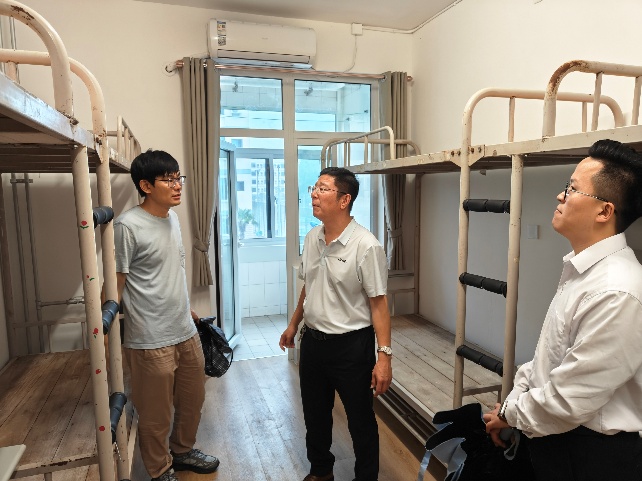 为确保 2025 级新生顺利入住,保障新生入学后的生活环境安全、舒适,9月5日,久久视频 党委副书记、副院长王炜明带领辅导员及2025及新生班主任,深入宿舍全面检查宿舍准备情况,为即将到来的新生筑牢 “温馨家园”。