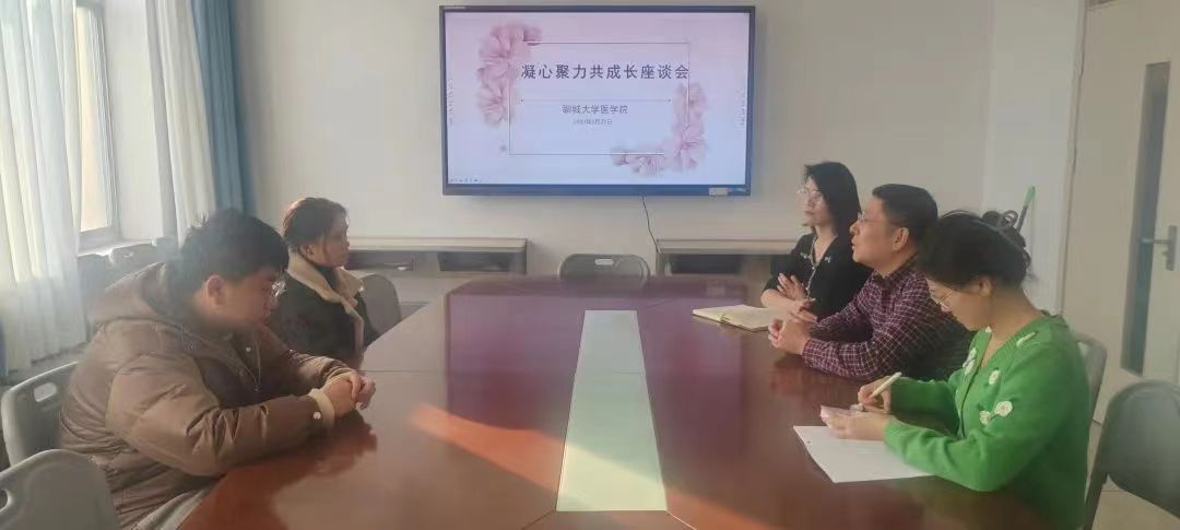 于东校区一号办公楼三楼会议室开展“凝心聚力共成长”座谈会,学院党委副书记王炜明、团委书记白东芳、辅导员王兰慧以及受资助的学生代表们参加本次座谈会。