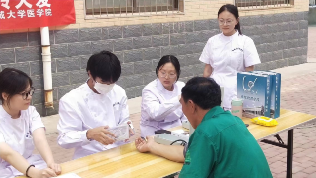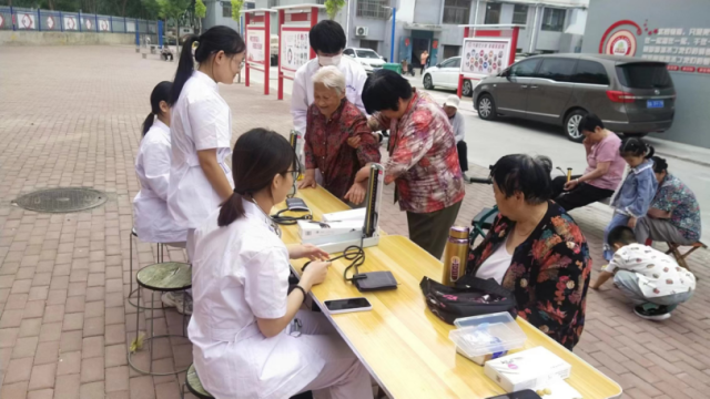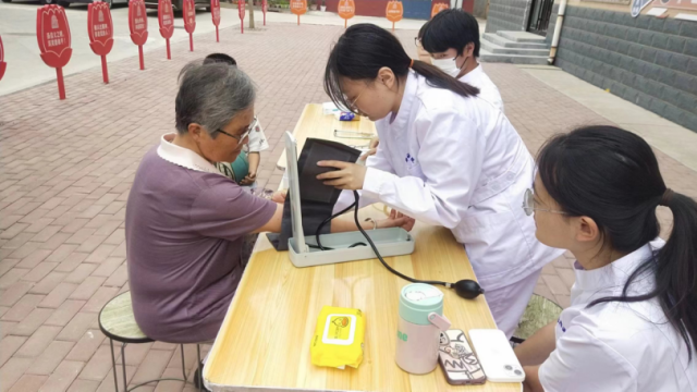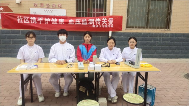 护理专业2022级3、4班,2023级3、5班团支部前往和平社区,联合开展测量血压志愿服务活动。