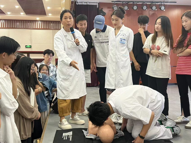 “医”心向阳志愿服务队于青年之家向2024年秋季援疆实习支教同学进行了一系列主题培训,校医院张秀春、王丽静、席萌萌、孙文辉担任培训老师,“医”心向阳服务队向参与支教的同学们演示心肺复苏,海姆立克和气道异物阻塞的处理方法。