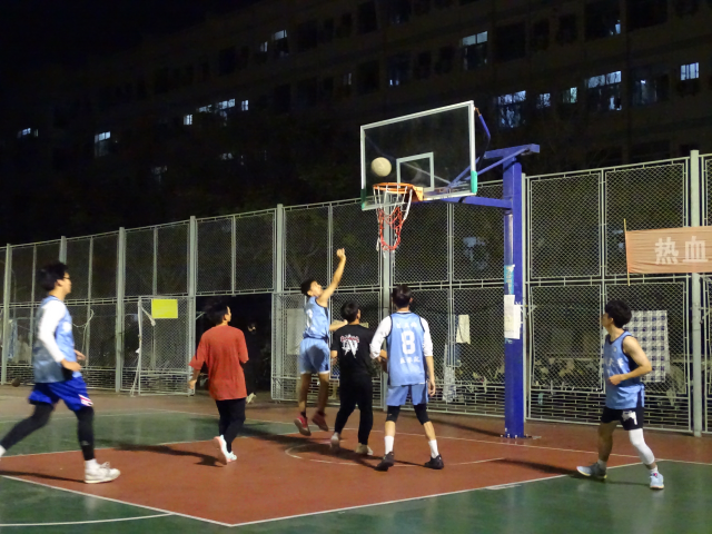 哨声响起,穿透十月秋风,少年们随球而动。秉持着“友谊第一”的竞技原则,篮球场上没有对失误的遗憾可惜,只有得分后的欢呼雀跃。金色灯光照耀着少年们洋溢着的青春风采,运球、转身、带球过人、跳投、截断,干净利落的动作展现着运动员们日复一日的累积,他们个个身手敏捷,锋芒毕露:每一次跳跃、每一次传球都透露出对胜利的势在必得。同时精彩的瞬间也吸引着场外观众的视线,欢呼声此起彼伏,将喧嚣传遍球场上的每一处。新生如朝露,在球场上迸发出旺盛的生命力,给以青春的鼓舞;老生则更加稳健,伺机而动,报以对运动的热忱。但是同样的,他们之间相互团结合作,都展现出对于赛场的热爱,对篮球的热衷。