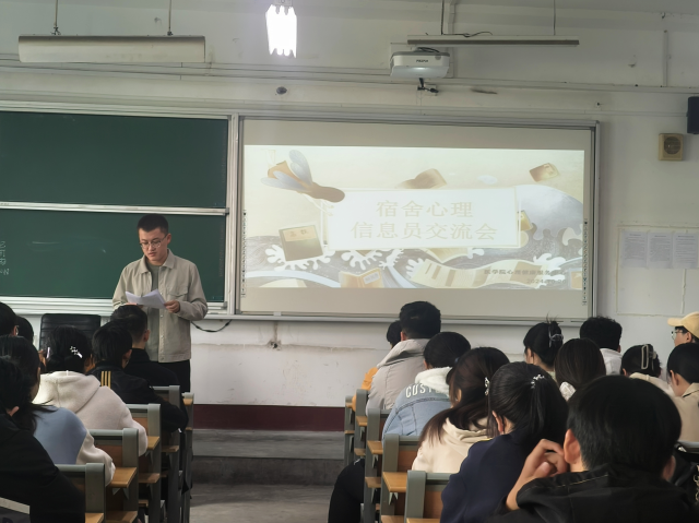 在会议进行过程中,冯昌顺首先对宿舍心理信息员在校园心理健康工作中的重要作用进行了强调。他要求宿舍心理信息员能够密切关注宿舍成员心理动态,了解宿舍成员的学习压力、人际关系等可能影响心理状况的因素,主动与宿舍成员沟通交流,营造积极和谐宿舍氛围。冯昌顺还提出预防宿舍成员出现心理问题,宿舍心理信息员应主动宣传心理健康知识,如果发现宿舍成员有心理困扰,要及时与该宿舍成员沟通并对其进行心理疏导,使该宿舍成员能够正确看待心理问题。