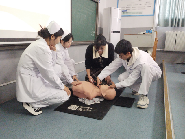 “医”心向阳服务队走进教育科学学院进行心肺复苏、海姆立克急救法等基本急救技能知识宣讲。