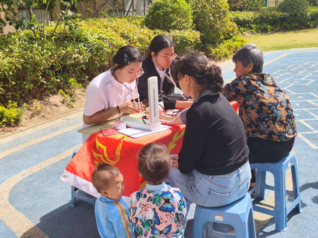 2024级4班团支部走进东昌府区祥生·金麟府小区开展“社区携手护健康,血压监测传关爱”定点免费测血压活动。