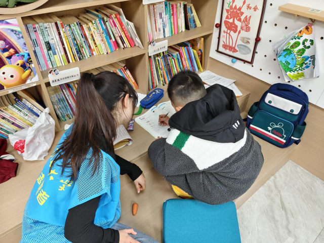 志愿者们早早地到达服务地点,细心准备好服务过程中需要用到的物品,为即将到来的小朋友们制造了一个温馨的氛围。小朋友们陆续到来后,志愿者们便针对不同小朋友的学习情况对症下药:碰到数学计算卡壳的小朋友,就拿起草稿纸画图演示,还举着桌上的文具举例,让抽象的数字变得鲜活;遇到语文生字书写不规范的小朋友,便弯下腰手把手纠正握笔姿势,用生动比喻引导规范书写,让知识点在欢笑中扎根。面对学习节奏稍慢的小朋友,志愿者们俯下身轻声鼓励,驱散他们的畏难情绪;对于学有余力的小朋友,就抛出拓展问题引导自主探索,还分享错题本整理等实用学习技巧,帮助小朋友更好的学习。活动现场暖意融融,小朋友们执笔凝神,在纸上认真书写,遇有困惑便高高举起小手,志愿者们即刻俯身倾耳,轻声细语地答疑解惑,温暖的手掌轻拍肩头,传递着鼓励与肯定。“这次志愿服务,志愿者们认真负责,也减轻了我们辅导孩子的负担!”一位家长说道。