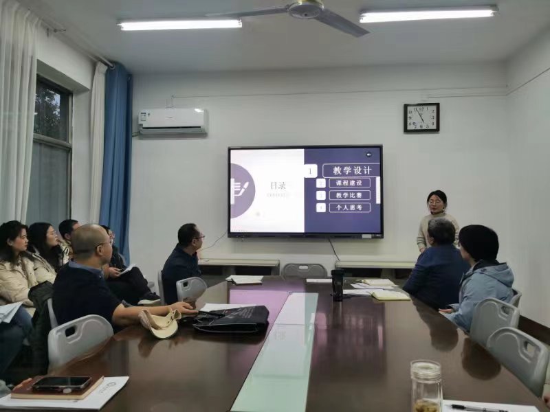 刘凤兰教师从教学设计、课程建设、教学比赛和个人思考四个方面阐述了培训成果,与会教师围绕汇报内容进行了交流和探讨。