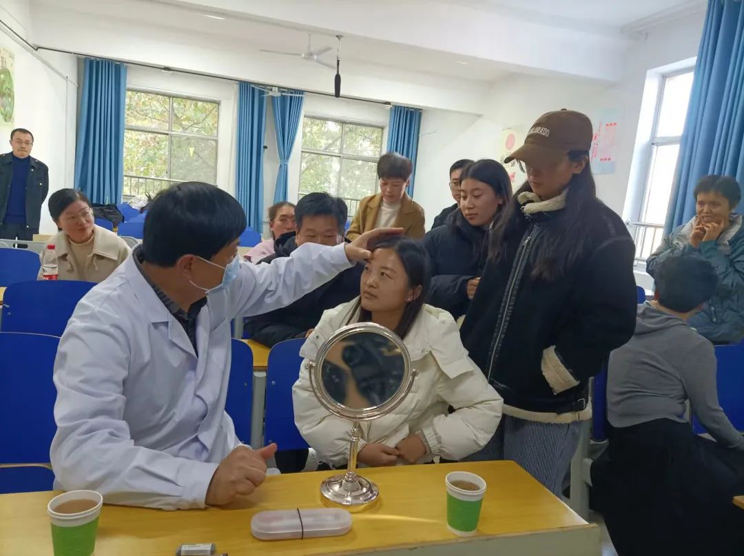 皮肤义诊环节,全体教职工带着自己对皮肤疾病的困惑前来咨询。曹凤鸣针对每个人的皮肤问题,结合各自生活方式和饮食习惯提出专业、科学的答复。他提倡大家要养成良好的作息习惯,戒烟限酒,健康饮食,保证生活质量。经过专业的咨询过后,教职工们围在一起讨论着每个人的皮肤问题,分享各自的护肤经验,交流最适合自己的护肤方法。大家纷纷表示要根据专家提出的建议改变以往的护肤方式,将健康护肤、科学护肤的理念贯穿到工作生活中去。