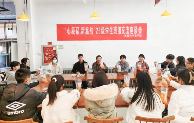于瀚苑餐厅2楼开展“心凝聚,新起航”23级学生班团交流座谈会。党委副书记、副院长王炜明、辅导员李孝杰及23级班团骨干参加此次活动。