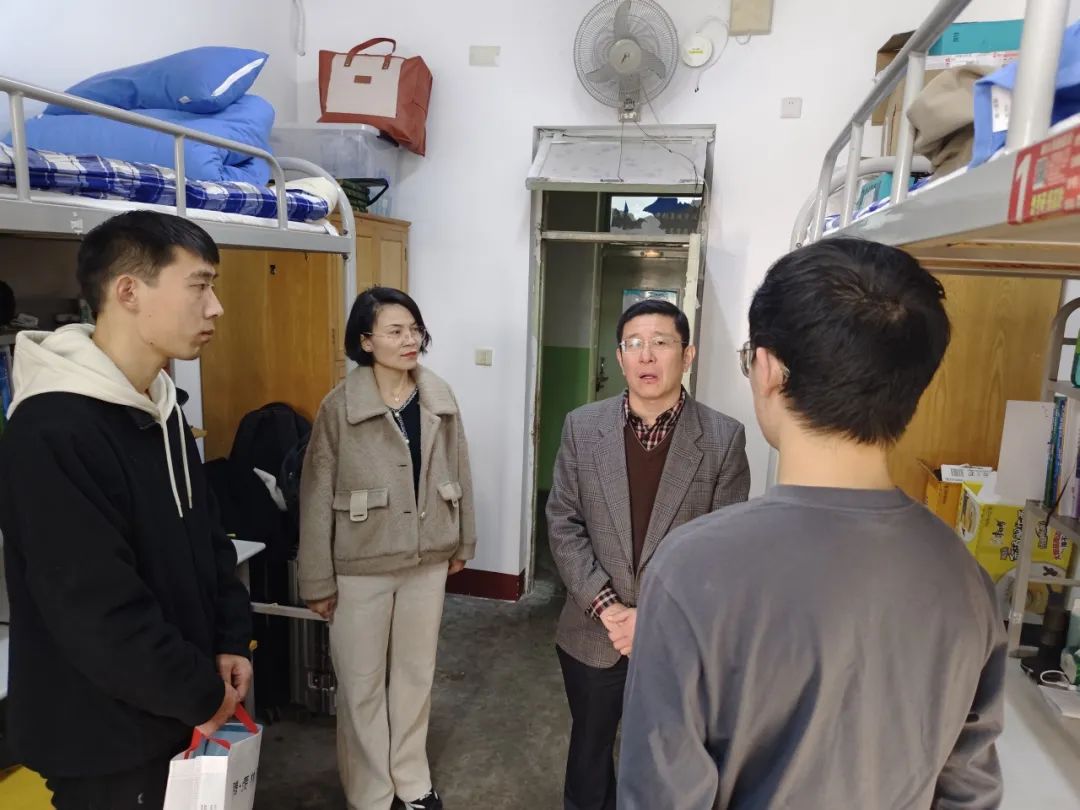 党委副书记、副院长王炜明、团委书记白东芳、辅导员李孝杰走进学生宿舍,对困难新生进行慰问关怀。