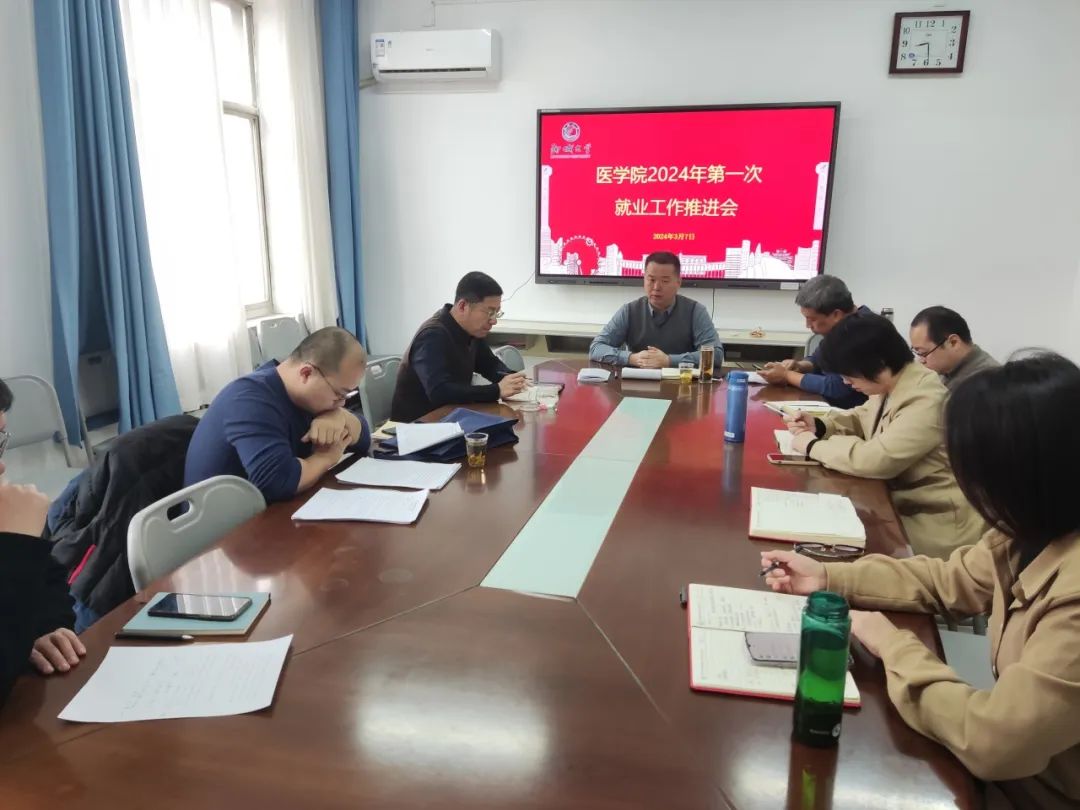于三楼会议室召开2024年就业工作首次推进会,共同研讨2024届毕业生就业推进工作,学院党委书记明辉主持会议,副书记、副院长王炜明、团委书记、就业辅导员和相关专业负责人参加会议。