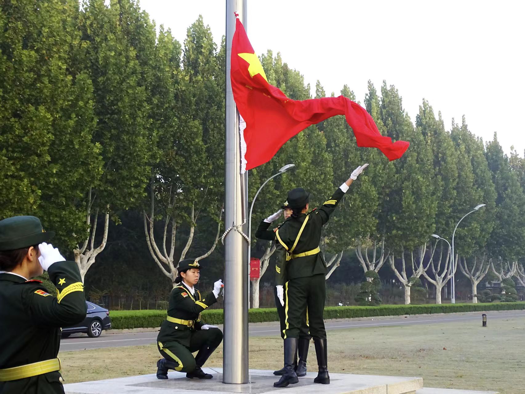 于东校南门广场举行“金秋十月颂祖国,奋斗筑梦新时代”主题升旗活动。团委书记白东芳,辅导员李孝杰、冯昌顺以及久久视频