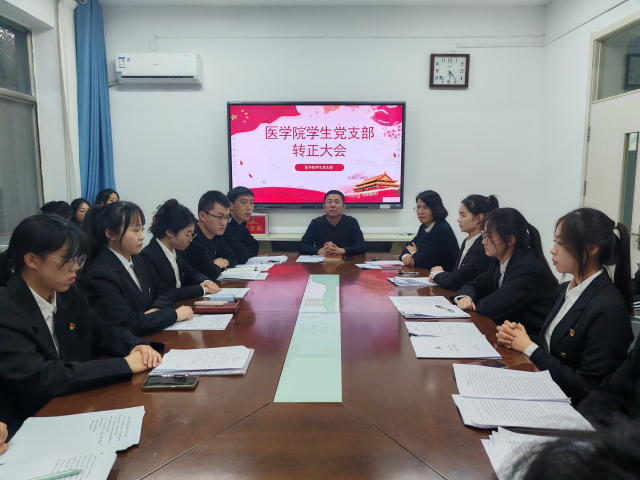 学生党支部于一号办公楼三楼会议室召开预备党员转正大会,党委副书记,副院长王炜明、辅导员李孝杰、冯昌顺以及全体党员参与会议,团委书记白东芳主持。