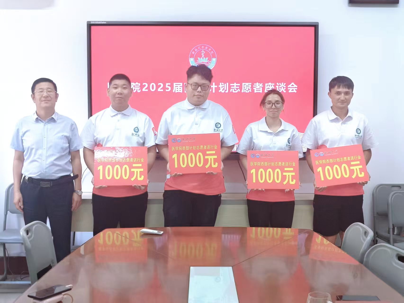 会后,王炜明为四位西部计划志愿者颁发送行金。