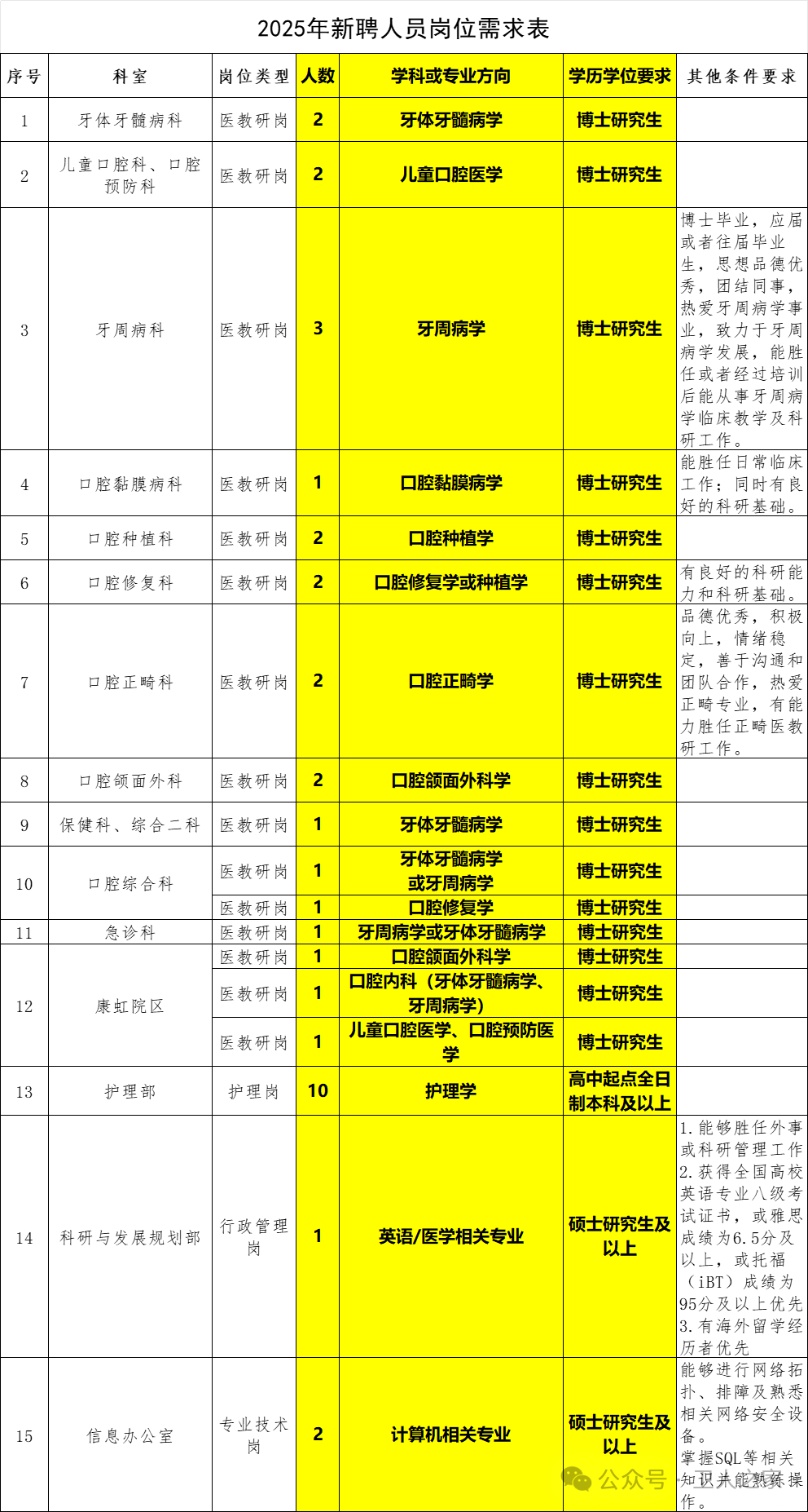 岗位表如下: