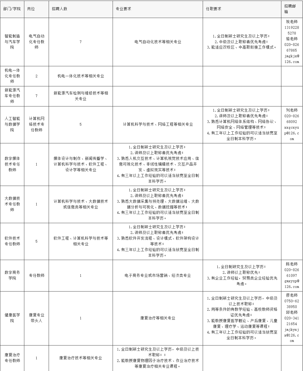 [email protected] (邮件以应聘岗位名称+姓名+专业+学历学位+高层次人才网”的方式命名,只需发送个人详细简历及相关证件图片,附件不宜过大),条件合适的相应部门/教学学院联系面试。