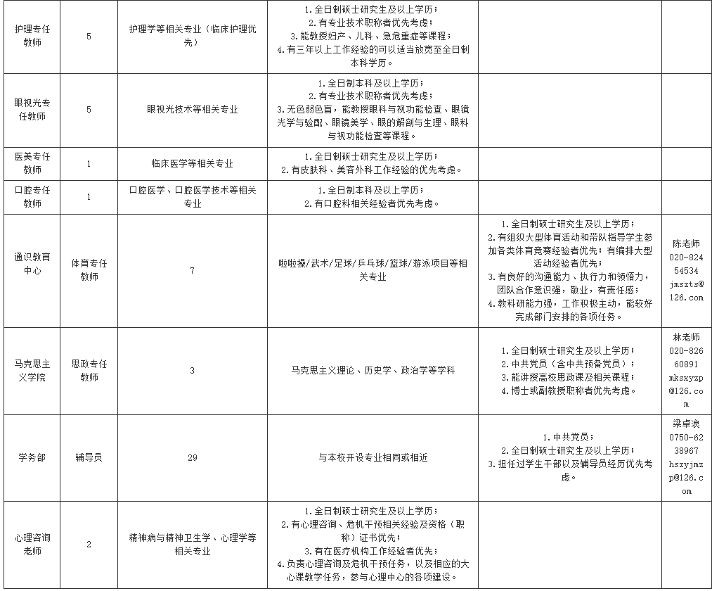 二、江门校区招聘计划